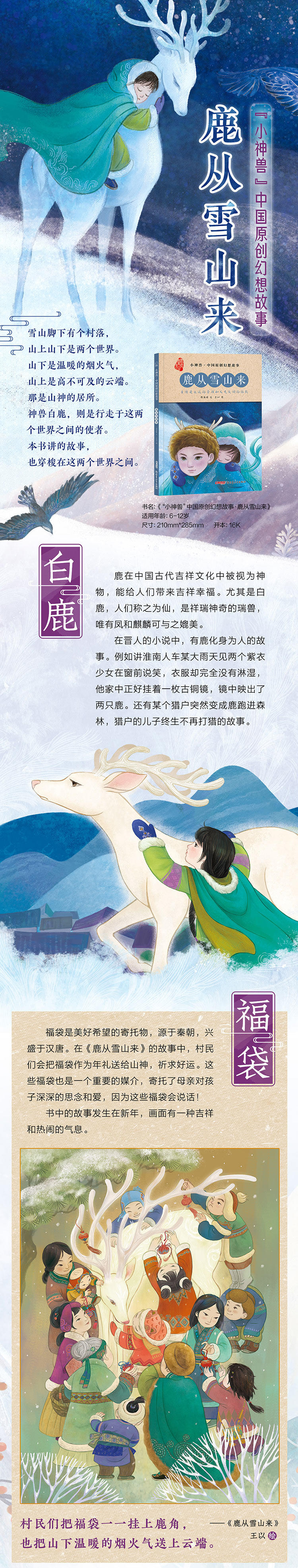 鹿从雪山来 小神兽系列中国原创山海经奇兽幻想故事 儿童绘本书籍精装硬皮