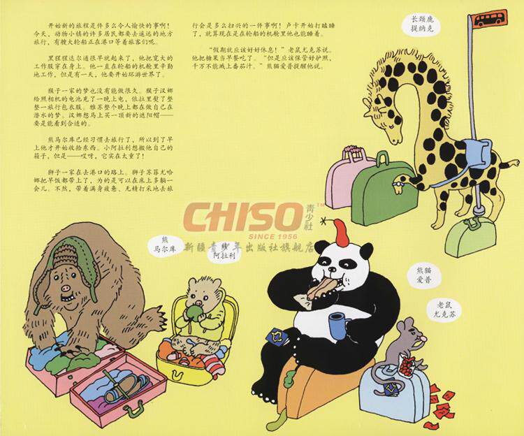 | 海豚要搬家吗? 狮子一家在研究轮船的机舱吗? 熊在旅行中出了很多汗,犀牛在用手电筒照飞蛾,长勇羚懒洋洋地躺在莎滩上,山羊在不断地往深处潜水……那是熊猫坐的热气球在空中盘旋吗? 动物小镇的居民们出发去旅行了,他们很会享受生活,他们体验和感受着新的、激动人心的东西!《小镇动物去旅行》这本书向我们展现了机场、港口、丛林还有在潜水和山地露营时的场景,让我们看到了一个多彩的世界。这本图画书将孩子的思绪带出了幼园园,让他们插上想象的翅膀来判不同国家和景点游览。插画家汉娜玛丽.罗哈宁的作品给读者留下了很大的自由发挥空间,让他们用自己的视角去解读故事。书的第一页介绍了故事的开端,其余的部分则根本没有文字,故事情节隐藏在图画中,需要读者根据画面来解读。对小一点的儿童来说,《小镇动物去旅行》是一本引人入胜的图画书:对大一点的孩子来说,这本书则是一个永不干涸的故事源泉。“在晚上讲故事的时候,这些没有文字的图画书比很多传统的儿童图书更好看,它们也理所当然地成为我们家的最爱。”在《北方人》杂志中,对作者的上一本书《动物小镇下雪了》是这样评论的。《动物小镇系列》的第一本《动物小镇的一天》同样妙趣横生,各种动物形象也跃然纸上。好了,让我们开始一段新的旅程吧! |